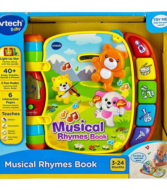 Musical rhymes book explore classic nursery rhymes with the musical rhymes book by vtech. Two fun modes include learning mode that introduces age-appropriate vocabulary and music mode that. RedProduct Information- Easy-to-turn pages feature engaging nursery rhymes and cheerful pictures- Twist and slide fun play pieces on colorful pages- Learning and music.