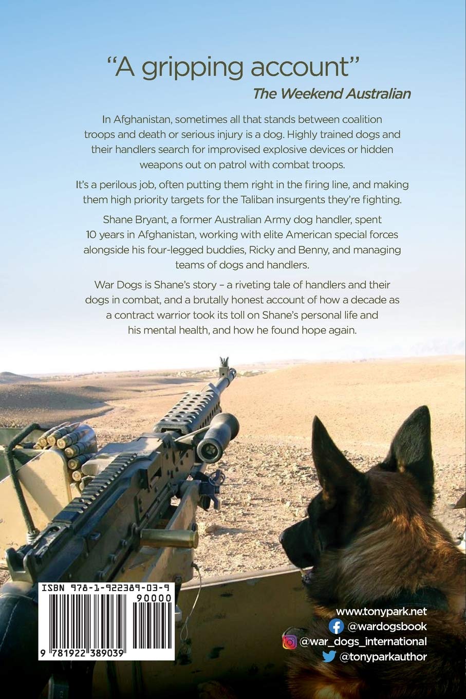 An Australian and His Dog Go to War in Afghanistan War Dogs An Australian and His Dog Go to War in Afghanistan In Afghanistan sometimes all that stands between coalition troops and death or serious injury is a dog Highly trained dogs and their handlers search for. Shane Bryant a former Australian Army dog handler spent 10 years in Afghanistan working with elite American special forces alongside his four-legged buddies Ricky and Benny and managing teams of dogs and handlers. War Dogs by Shane Bryant 9780655690719 available at Book Depository with free delivery worldwide.